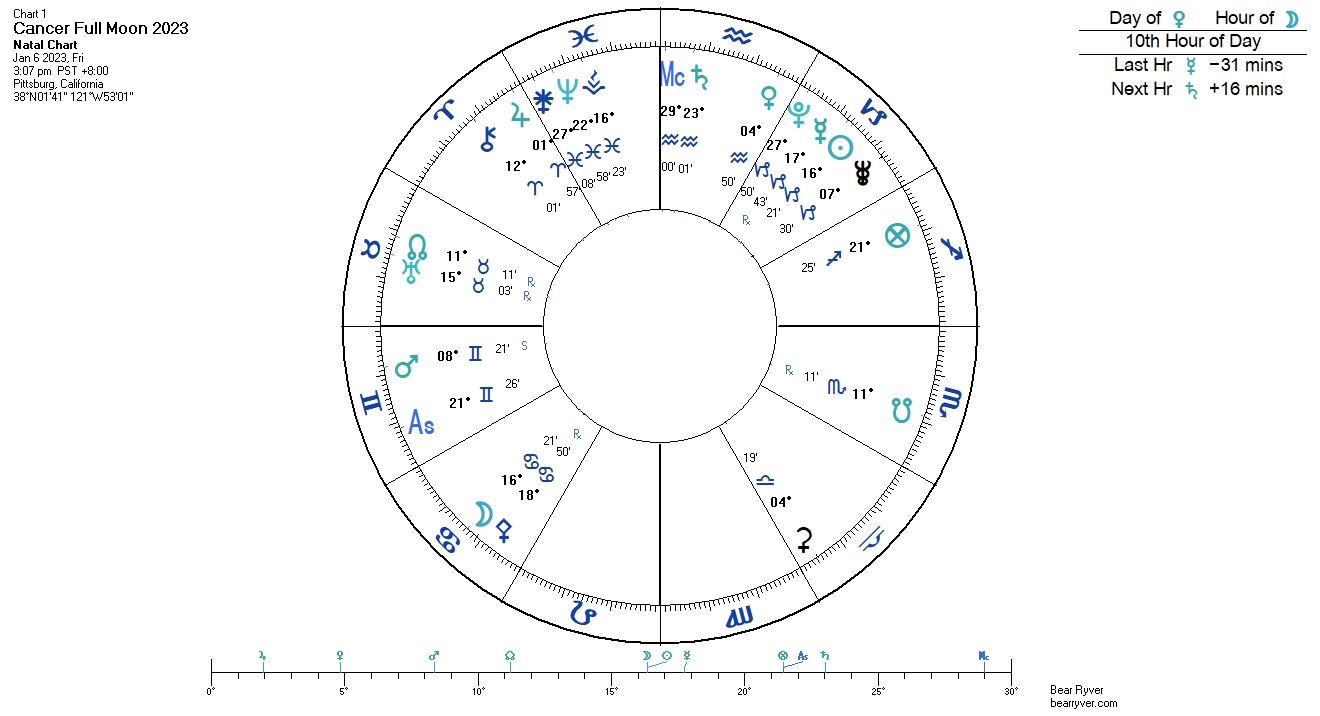 Instead of writing a post about the Cancer Full Moon, I lived it – busy working in my home office, enjoying some blessedly benefic Moon time - free from the sight of the malefics.